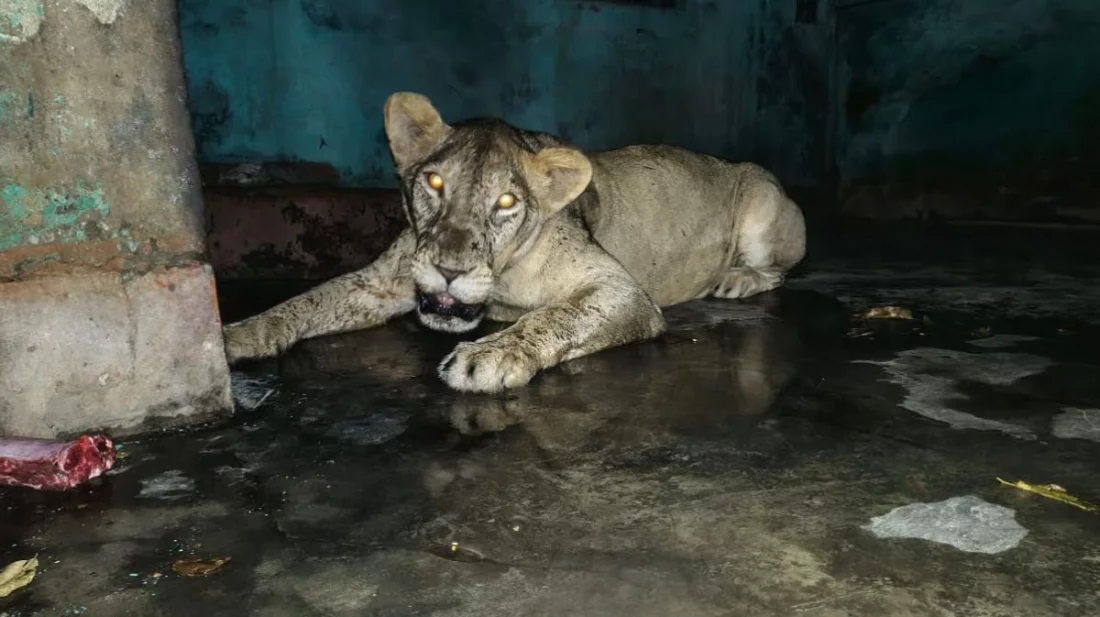 ছুটির দিনে খাঁচা থেকে বেরিয়ে পড়া সিংহটিকে ফেরানো হলো খাঁচায়