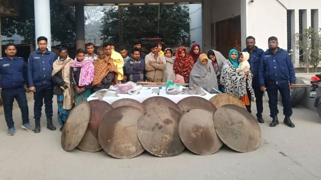 আটকরা হলেন- মো. সহিদ মোল্লা (৬৫), মো. শহিদ মোল্লা (৬৬), সিয়াম শেখ (১৫), পারভেজ ফকির (২৫), নাজমুল (২৩), আজিম মোল্লা (২৭), শাজাহান শেখ (৩৬), রবিউল মোল্লা (৩০), ইদ্রিস মোল্লা (৪২), আলেয়া বেগম (৩৮), তামান্না আক্তার (২০), মনিরা আক্তার (৩৫), রুনা আক্তার (২২), নাদিয়া বেগম (৩২), নূরজাহান (৬০), জয়নব বেগম (৬০) এবং আরও দুই কিশোর।