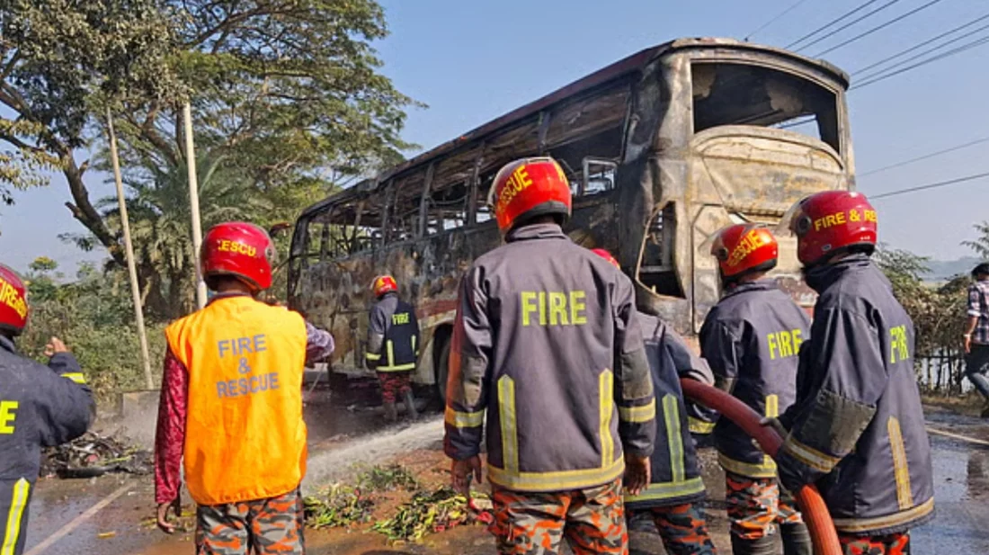 উল্লেখ্য, এর আগে গত শুক্রবার দুপুরে কুমিল্লার দাউদকান্দি উপজেলায় সংঘর্ষের পর ওই বাসে আগুন লেগে যায়। পরে ফায়ার সার্ভিসের সদস্যরা আগুন নিয়ন্ত্রণে এনে ঘটনাস্থল থেকে চারজনের মরদেহ উদ্ধার করে। এ ঘটনায় আহত হন অন্তত আরও ২৬ জন।