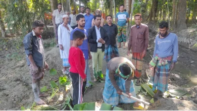 রোগীকে হাসপাতালে নিতে হয় খাটিয়া করে, বেহাল সড়কে কচুগাছ লাগিয়ে প্রতিবাদ