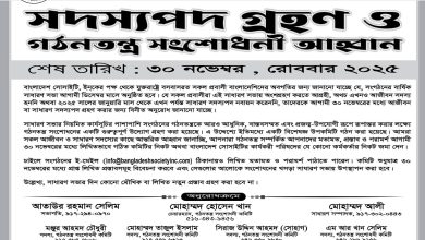 বাংলাদেশ সোসাইটির গঠনতন্ত্র সংশোধনী কমিটি গঠন ডিসেম্বরে সাধারণ সভা